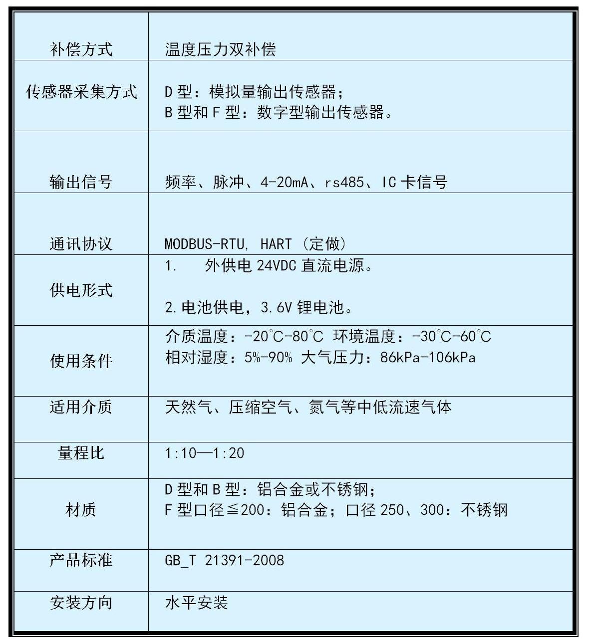 D型/ B型適合計量天然氣、氮氣、 氫氣、壓縮空氣等潔凈的中低流速氣體。F型適合貿易計量天然氣、氮氣、氫氣、壓縮空氣等潔凈 的中低流速氣體